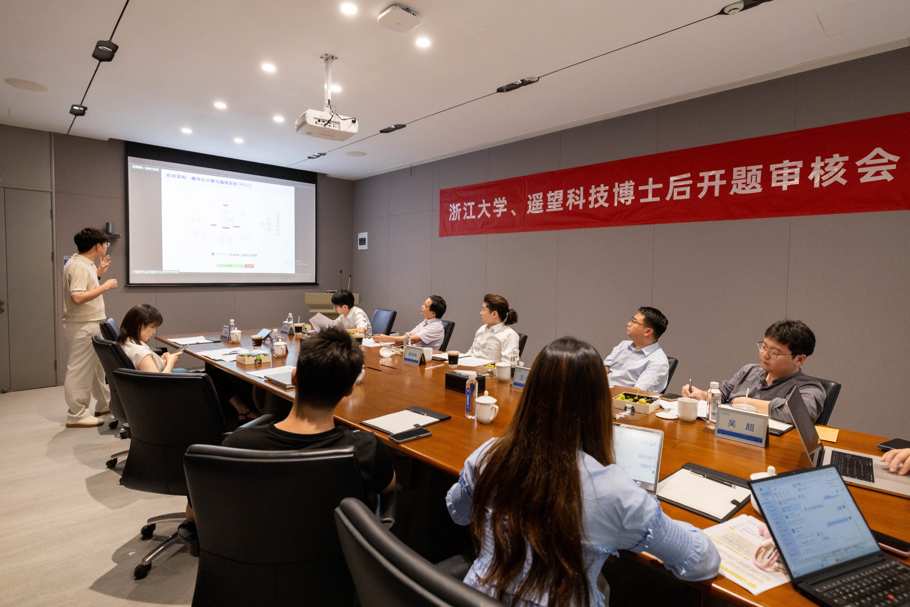 授牌仪式结束后,博士后开题审核会延续举行,李杨博士就研究项目《面向复杂任务的大语言模型智能体(LLM Agent)分解能力评估与优化框架研究》分别从选题价值、研究内容、研究方法、创新性、预期成果以及存在困难等进行了详细汇报。评审专家针对课题的研究背景、研究设计、创新性、可行性等方面进行质询和讨论,并对开题报告提出了修改意见建议。最终,经评审组专家的慎重讨论,认为该项目立足社会发展需求,研究思路新颖,技术方案科学、合理,一致同意开题。
