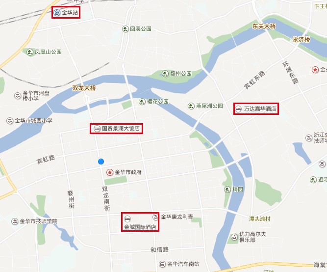 | 金华金城国际酒店 | 准五 | 430 | 520 | 410 | 460 | 金华市婺城区环城南路西段1219号 | 约5公里,车程约15分钟 |