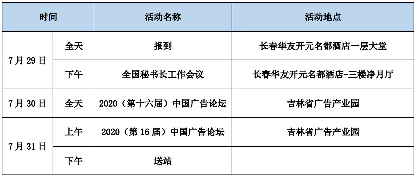 2020(第16届)中国广告论坛活动安排
