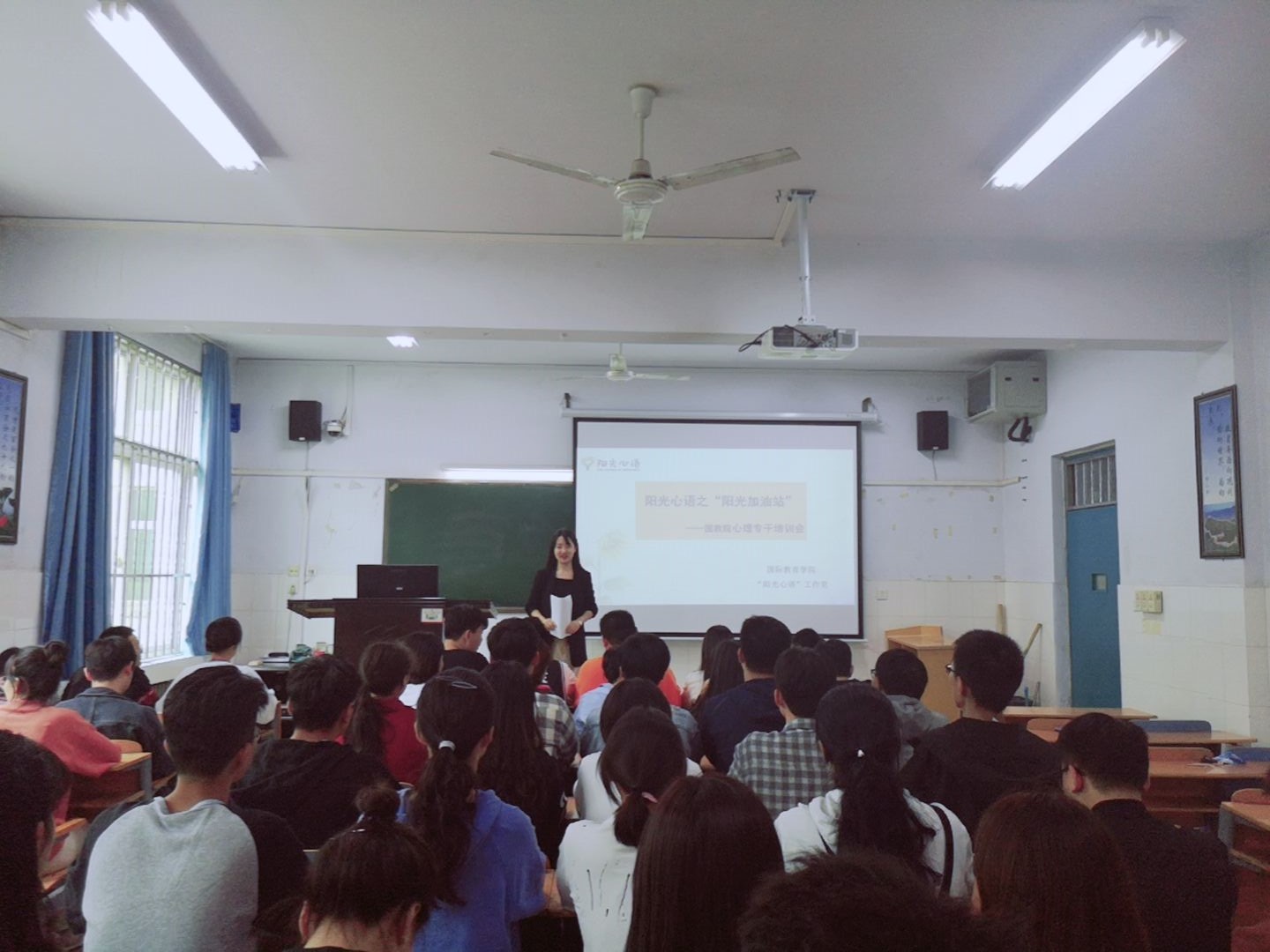 为进一步排查出学生心理问题,beat365官方网站于2019年9月19日下午一点半在A207教室开展了--阳光心语之“阳光加油站”心理培训课程,本次会议由心理专干丁玮老师主讲,19级代班长和各班班委参加。
