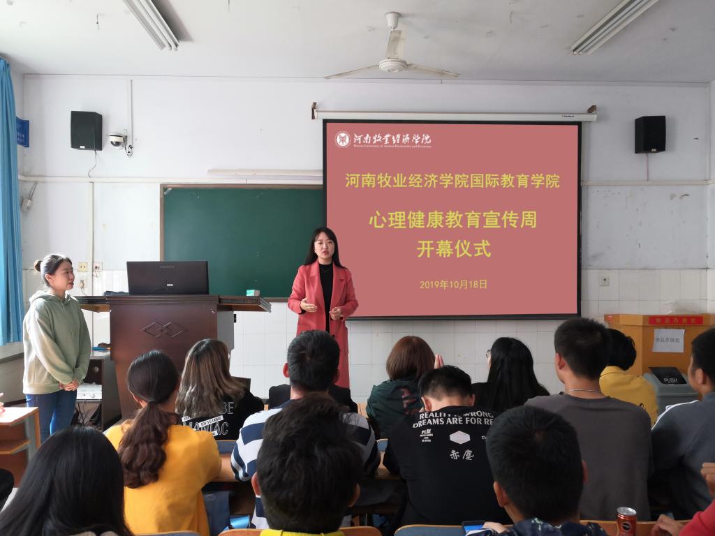 为进一步扎实推进我院大学生心理健康教育工作,提高大学生的心理素质,帮助新生快速适应、了解大学生活,明确大学学习的目标和理想,促进大学生的身心健康,宣传普及心理健康知识,深入开展心理健康教育,我院于2019年10月17日下午1:30在A203教室开展以“健康青春你我,奉献伟大祖国”主题心理健康周活动开幕式。