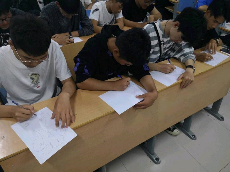 为了了解大一新生的心理健康情况,beat365官方网站于2019年9月25日在A楼进行了一次特别的心理学测试——画树分析。我院阳光心语工作室心理专干丁玮老师向我院每个班级的同学分发了一张A4纸,让每位同学都闭上眼去想象自己心目中大树的模样,然后把它画在分发的A4纸上。除了画出“主角”大树,同学们还可以根据自己的想象在上面添加其他的事物。在画树的过程中,丁玮老师只是静静等待他们作画,因为老师觉得随意走动会扰乱同学们绘画的专注度,就可能达不到心理测试的理想效果了。