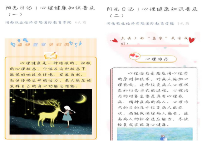 为响应2020年“同心抗疫,青春绽放”心理健康宣传周活动的要求,普及心理健康知识,营造良好和谐的校园心理氛围。按照校心理健康教育要求,我院开展了“阳光日记” 心理知识宣传教育专题推送。