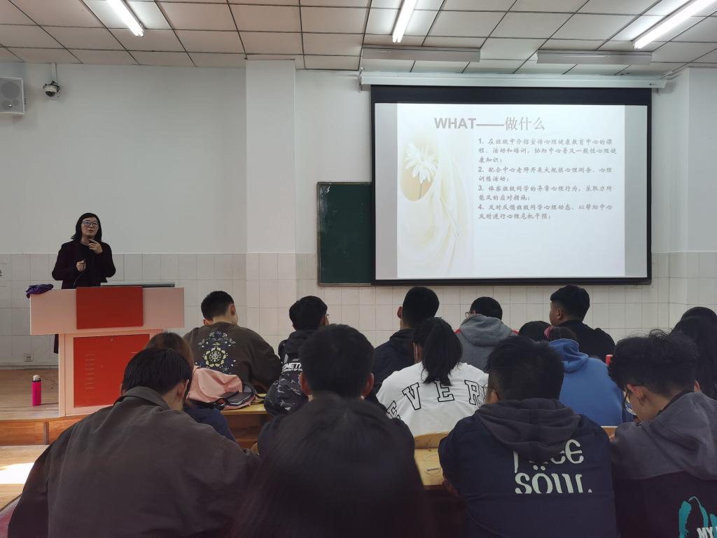 为向学生介绍和宣传心理健康课程,协助心理健康中心普及一般性心理健康知识,配合老师开展心理健康排查及反馈各班同学心理情况。beat365官方网站于2020年11月11号中午在教学楼E209教室开展心理健康排查与培训讲座,由心理中心老师陈莉担任主讲。