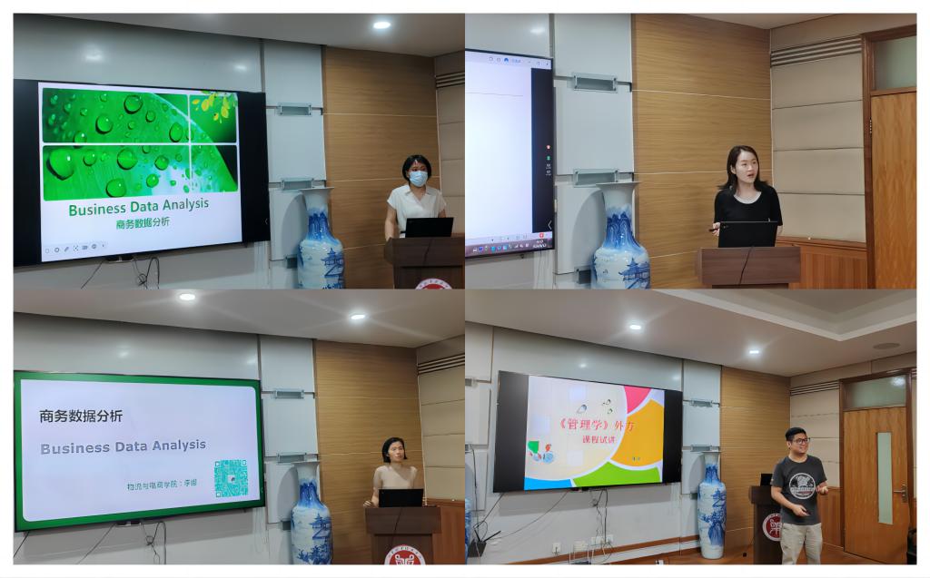 随后,来自物流与电商学院与工商管理学院的4名首次担任双语课程教学的教师分别进行了试讲,他们通过课件制作、教案编写、专业知识把握等方面展示了各自的教学方法和教学能力。与会的评委进行了认真地听讲并就每位教师的课程准备、教学内容、教学方法、教学效果等方面逐一点评,向试讲教师现场反馈改进意见。邵翠丽向各位试讲教师提出了殷切希望,她指出:新任的双语教师要多向教学经验丰富的教师虚心请教、慢慢探索教学方法,不断总结教学经验,潜心教学、匠心育人,站稳讲台。最后,邓瑜进行了总结,她对新任双语课程的教师提出了几点要求,希望各位新任双语教师把握双语课程教学特点,了解中外合作办学学生特性,因材施教,帮助学生成长成才,共同提高中外合作办学教学质量。