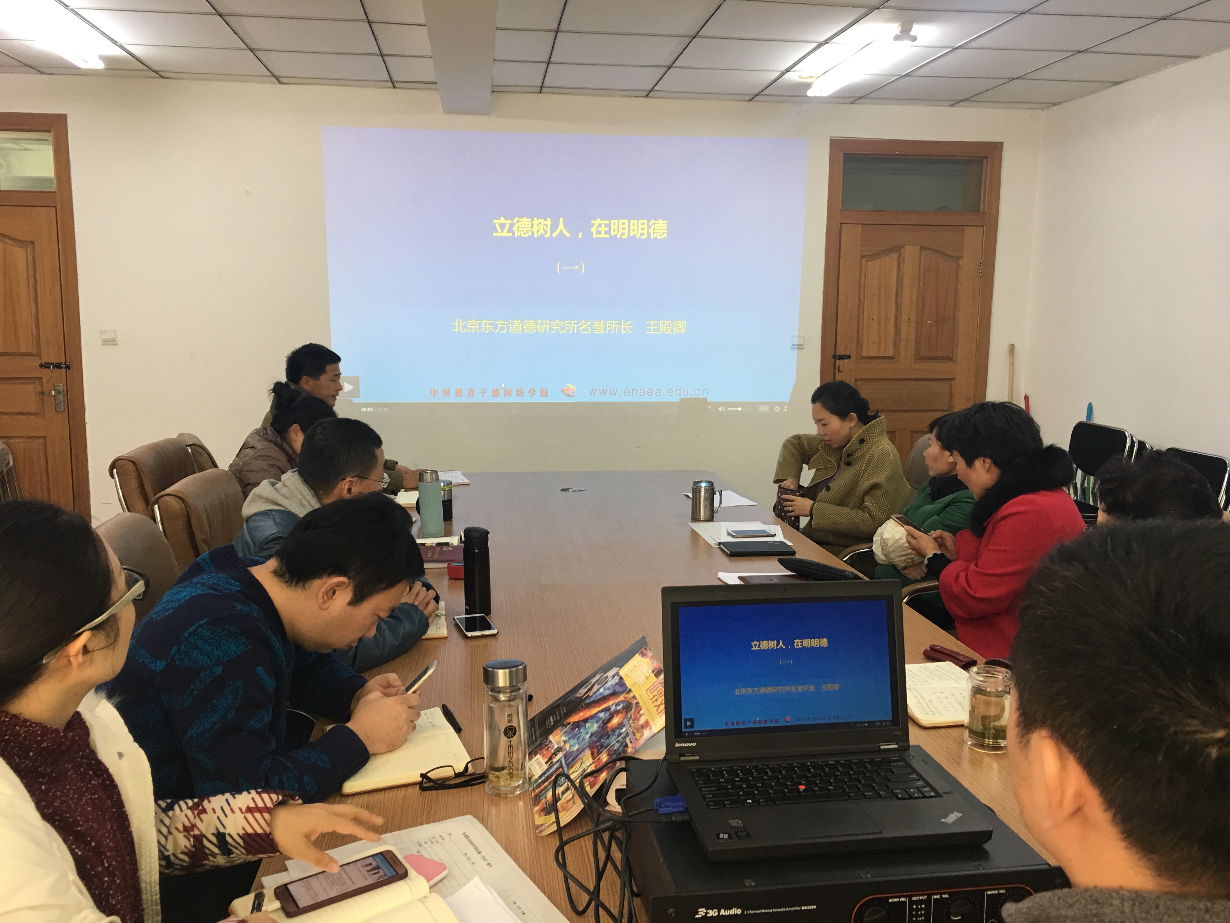 12月22日下午,beat365官方网站党总支在院会议室举办党风廉政建设专题网络培训。培训会由党总支书记李芳主持,全体党员参加。培训会学习了北京东方道德研究所名誉所长王殿卿的《立德树人,在明明德》和教育部高等学校社会科学发展研究中心主任王炳林的《关于高校意识形态的几个问题》两个视频讲座。