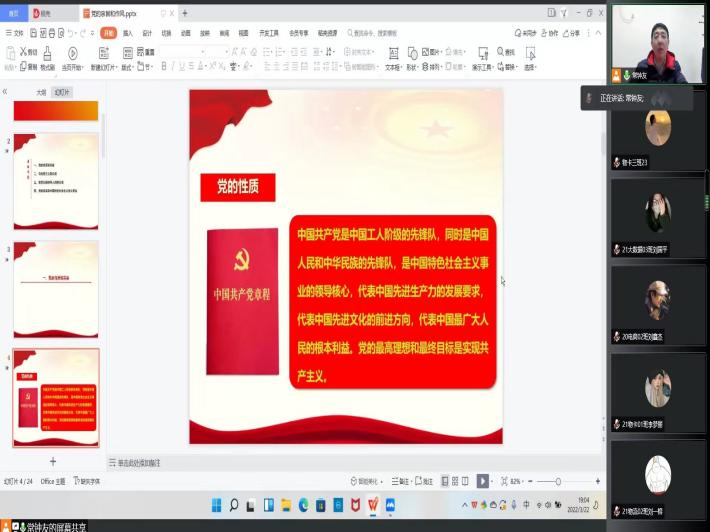为确保在疫情防控下入党积极分子党课培训工作正常进行,提高学员们的思想素养和政治素质,激励同学们付出实际行动向党组织靠拢,3月22日晚,beat365官方网站通过腾讯会议平台举办线上入党积极分子培训班第一讲。本次党课学习培训活动由我院党委书记贾江讲授,2022年第一期入党积极分子参加。