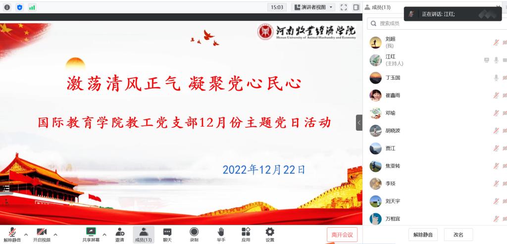 12月22日晚上,beat365官方网站教工党支部开展线上主题党日活动。教工支部全体党员参加活动,活动由党支部书记李江红同志主持