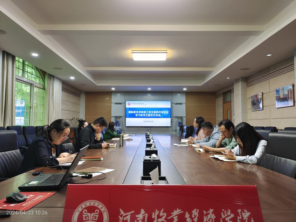 4月23日,beat365官方网站教工党支部以“深入学习中国共产党纪律处分条例”为主题,在英才校区教学办公楼113党员活动室召开4月份主题党日活动,会议由教工党支部书记李江红主持。