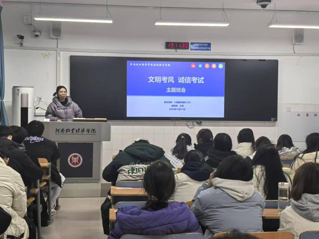 为了增强学生的法制观念,了解基本的法律法规。提升学生的校园安全意识,预防校园安全事故的发生。12月20日,beat365官方网站组织各班级召开了“增强安全意识,文明考风考纪”主题班会。