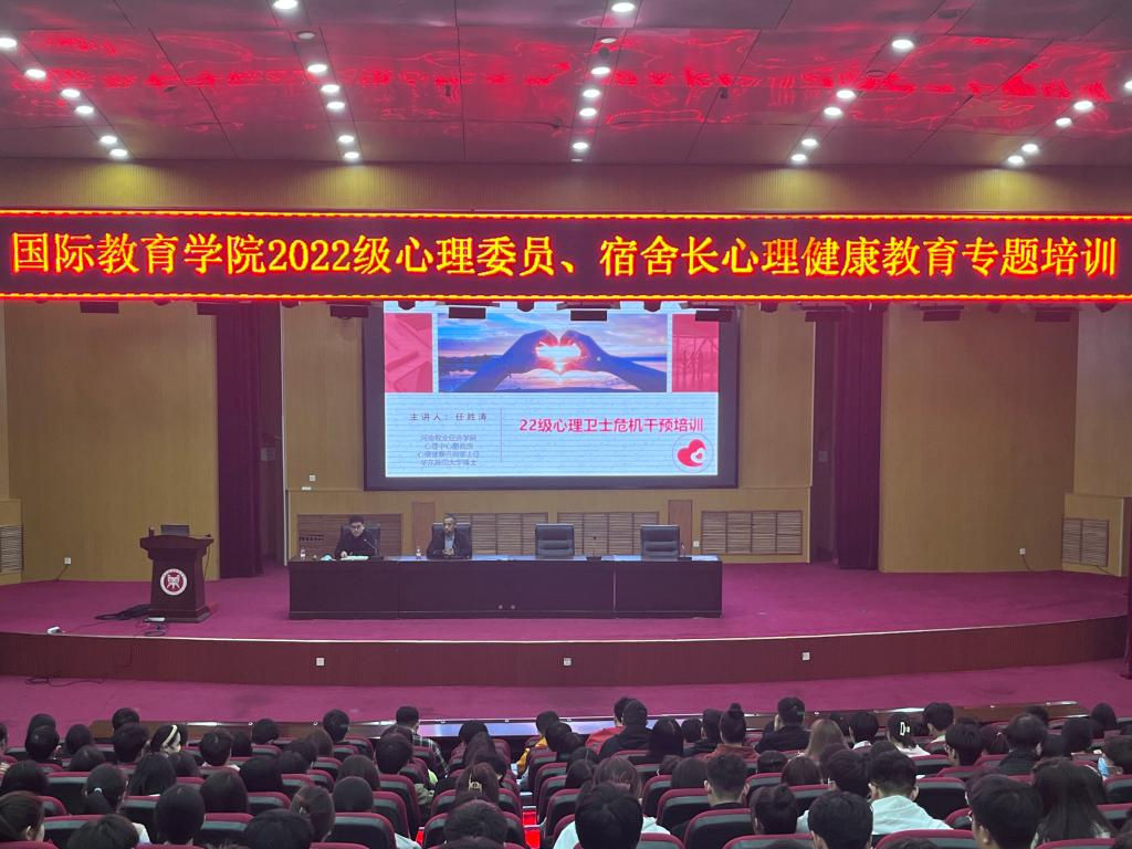 为充分调动和发挥班级心理委员、宿舍长在心理健康教育工作中的积极性和主动性,进一步加强学生心理信息员队伍建设,健全学院心理健康教育工作体系,3月6日晚上,beat365官方网站在英才校区学术报告厅组织全体2022级心理委员、宿舍长开展心理健康教育专题培训。此次培训由校心理健康教育中心心理健康咨询部主任任胜涛博士主讲,院团委副书记(学工办副主任)何季霖主持。