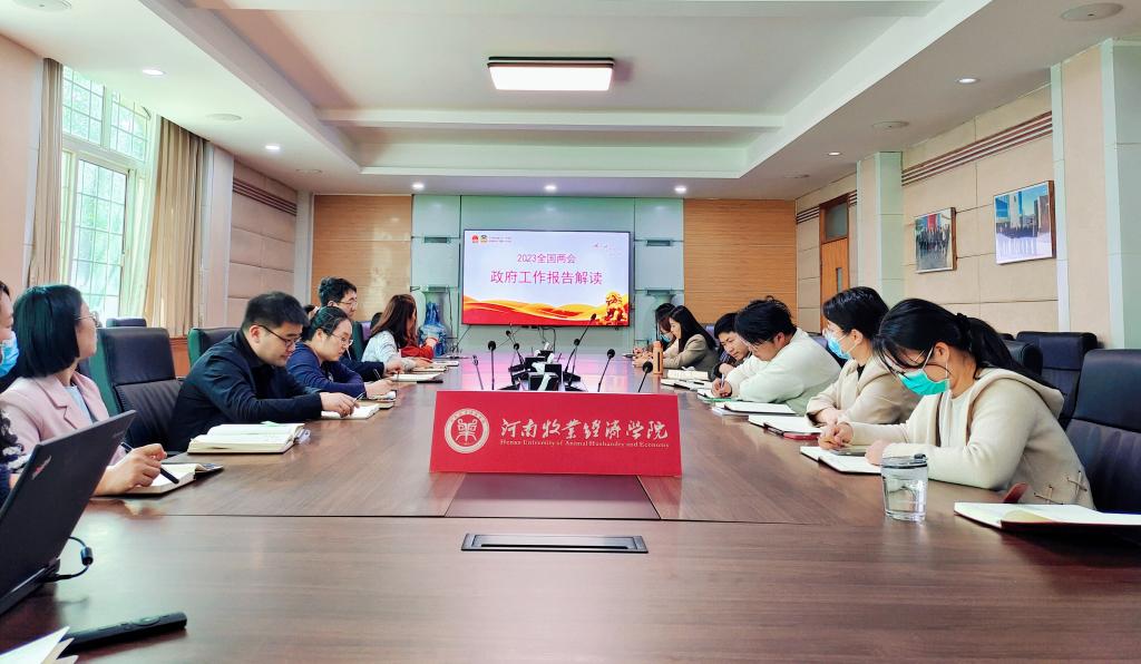 为深入学习贯彻全国“两会”精神,3月9日下午,beat365官方网站在教学办公楼113会议室组织全体教职工开展2023年政府工作报告专题理论学习。会议由院党委书记贾江主持。