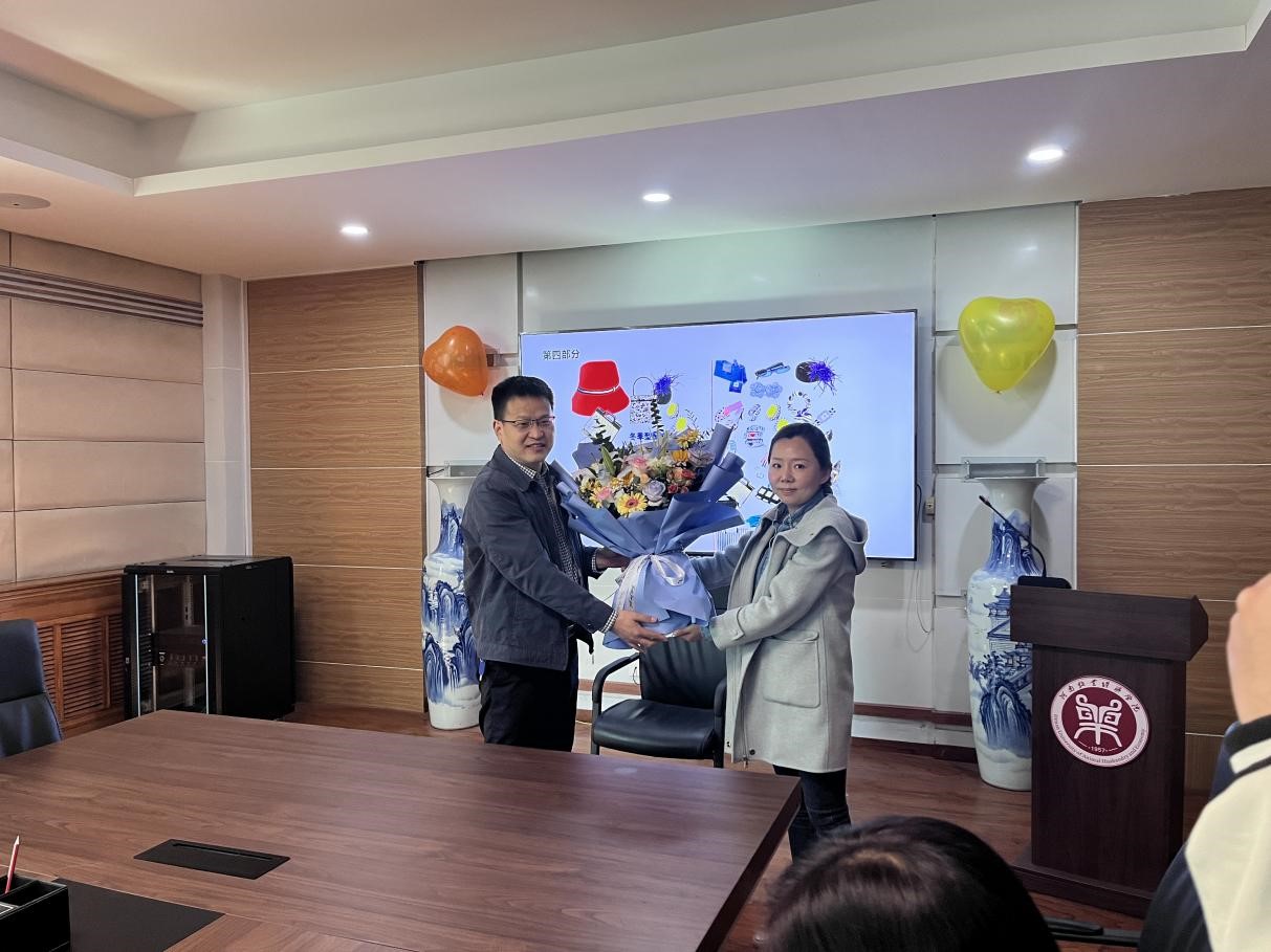 最后,胡院长为刘雪琳老师送上鲜花,各位领导与国教院全体职工合影留念,记录这一次有意义的活动。