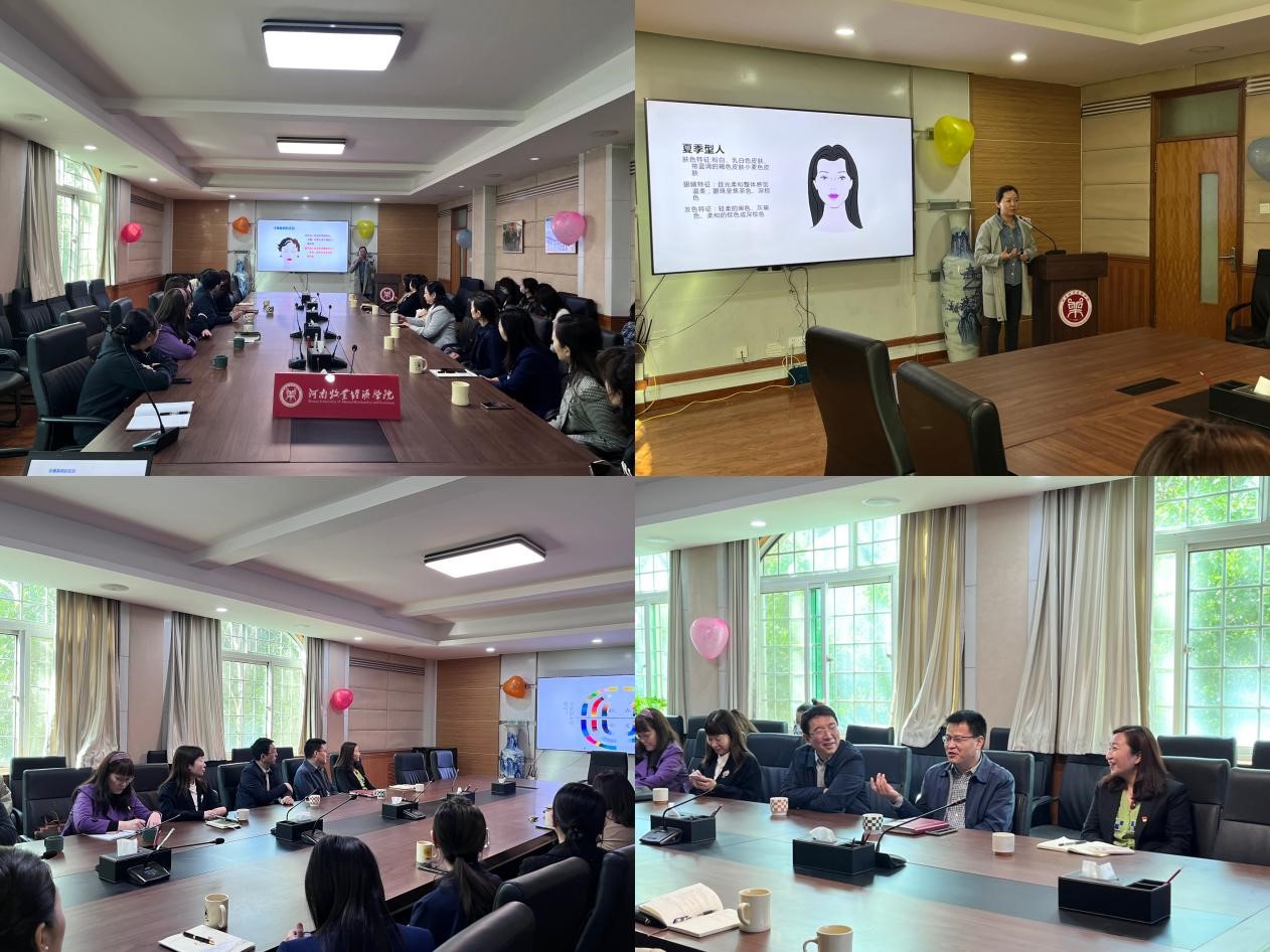 三月的蓓蕾绽放早春的第一缕殷红,桃花盛开,梨花飞舞,为庆祝第113个“三八”国际妇女节,体现对女性的关爱与尊重,由校工会女工委主办,beat365官方网站分工会承办的“彰显魅力,美丽人生”——女性商务穿搭技巧分享活动于3月13日上午9时在英才教学办公楼113举行,活动由刘雪琳老师主讲,校团委,校医院、校心理中心和其他各兄弟学院领导参加,李江红书记主持。