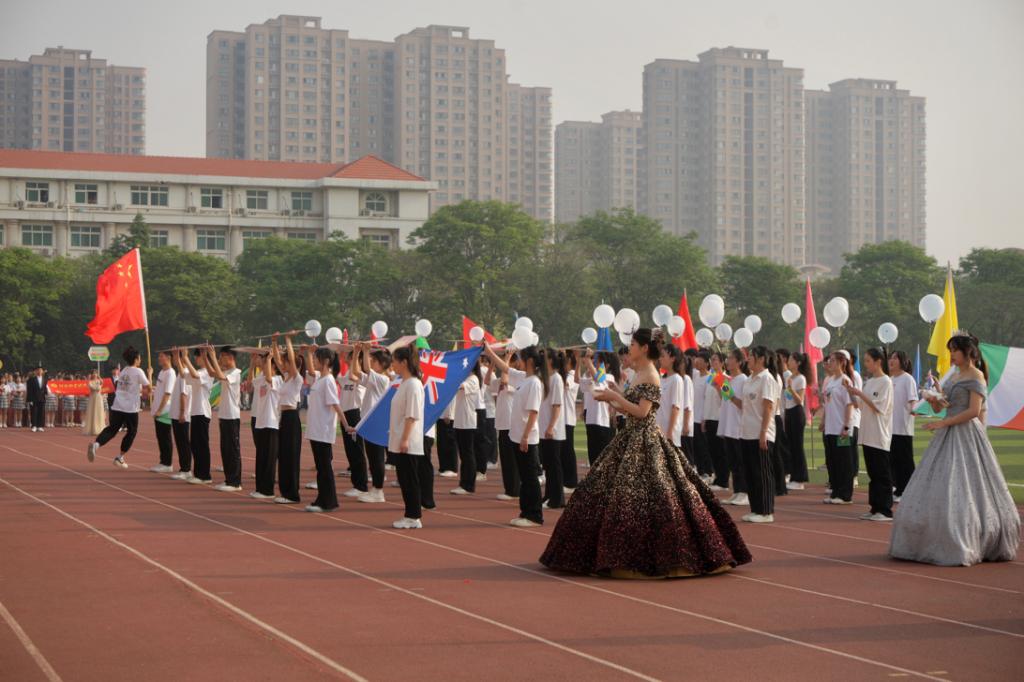 4月20日上午,beat365官方网站英才校区的田径场上彩旗飘扬,各队伍方阵整装待发,观众席气氛高涨、欢呼不断。东日旭阳撒向绿茵草坪,身着军装的国旗护卫队、校旗队,充满激情的彩旗队,以及各学院、书院别具风格特色的代表方阵依次入场。只见beat365官方网站代表方阵面带骄人的微笑,迎着清晨的光辉在主席台下站定,同学们用力挥舞五星红旗,高扬各国国旗,将beat365官方网站中外融通,交流合作的办学理念充分展现出来。红旗飘扬,五彩斑斓的气球缓缓上升,白色和平鸽盘旋在绿茵场上方,引来观众席一阵热烈欢呼。随着最后一支方阵归入队伍,学校领导发表本次运动会的激昂致辞,田径比赛正式开始!