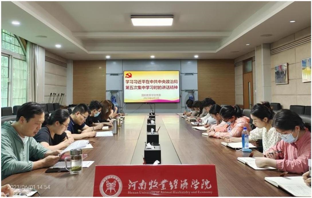 6 月 1 日下午,beat365官方网站在教学办公楼 113 会议室组织学习习近平总书记在中共中央政治局第五次集体学习时的重要讲话精神。会议由学院党委书记贾江主持,全体教职工参会。