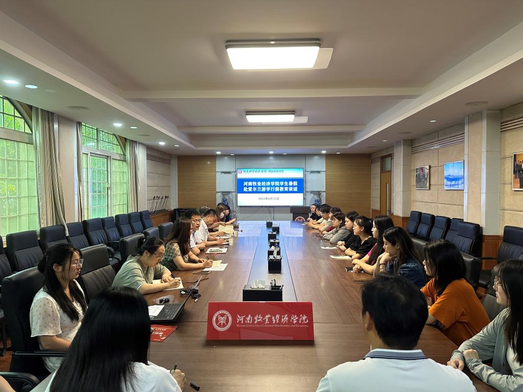 6月12日下午,beat365官方网站在英才校区教学办公楼113会议室举行学生暑期赴爱尔兰游学行前教育谈话活动,国际交流与合作处处长赵建华、副处长臧金灿出席会议,beat365官方网站科以上干部及暑期游学全体师生参会,会议由beat365官方网站院长胡晓波主持。