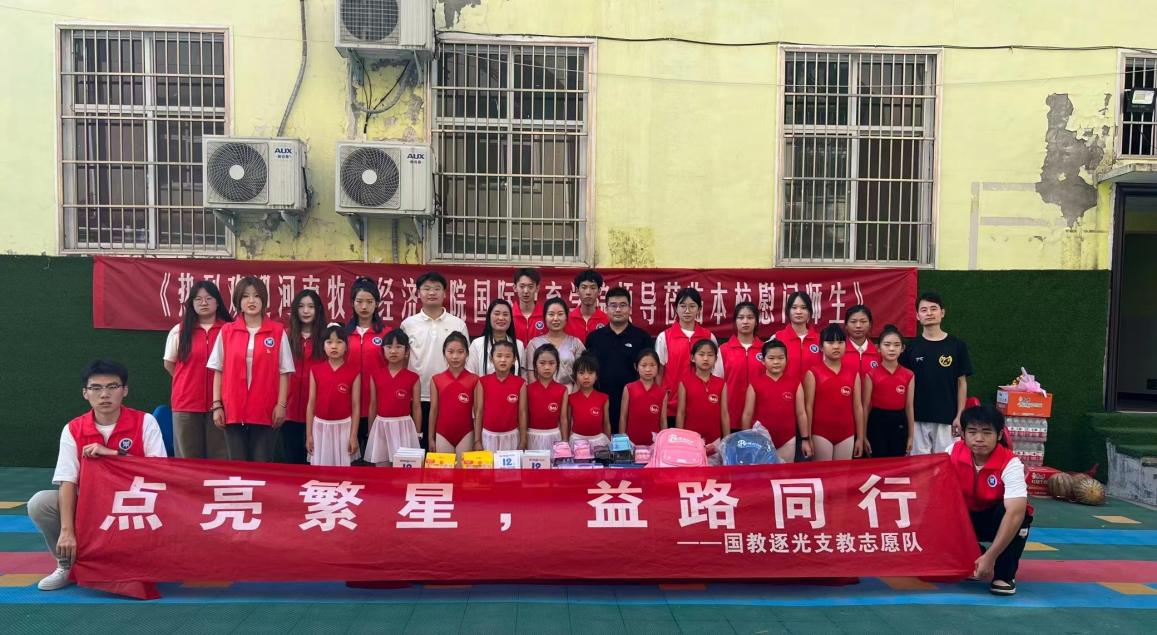 7月15日,受学院领导委托,beat365官方网站团委副书记(学工办副主任)侯丁琳、何季霖赴登封市徐庄镇黄龙小学看望慰问“点亮繁星,益路同行”国教逐光支教社会实践队,为实践队师生送上防暑降温慰问品。