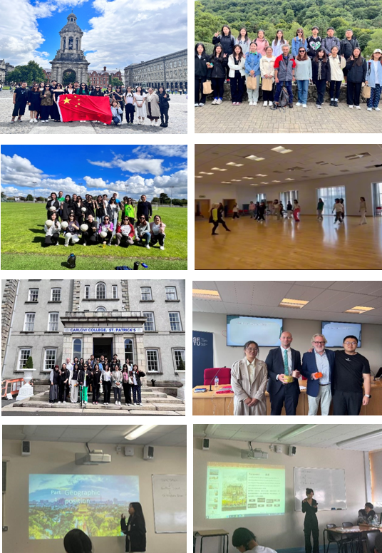 在学习之余,东南理工大学组织同学们实地参观了圣三一学院、威克洛山国家公园及基尔肯尼城堡等,亲身感受了当地优美的自然风光及年代久远的历史建筑;组织同学们前往卡洛大学,并与在卡洛大学交流学习的德国学生共同完成寻宝之旅;带领同学们深度体验了爱尔兰传统文化,如爱尔兰曲棍球、盖尔足球、爱尔兰舞蹈等,进一步领略了当地的人文风情。同学们也向东南理工大学传输了中国的茶文化,中医艾灸,河南省市的地理、美食、旅游等多方面的知识,促进了中外文化的进一步交流。