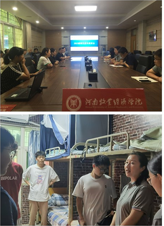 9月10日中午,学院党委书记贾江、院长胡晓波、党委副书记李江红利用中午时间,与新生家长进行了座谈交流,加深了2023级新生及家长对学院及专业相关信息的了解,让新生更好地融入大学生活。10日下午,学院领导班子及新生辅导员到学生公寓进行了走访与慰问。在走访学生宿舍和看望新生的过程中,院领导与新生们进行了亲切交谈,贴心询问新生的入学感受,并叮嘱新同学们良好的开端是成功的一半,同学们在校期间要积极适应新的校园生活,要严格遵守学校的规章制度,注意宿舍卫生,强化安全意识;要经常性与家长联系,让家长放心和安心。