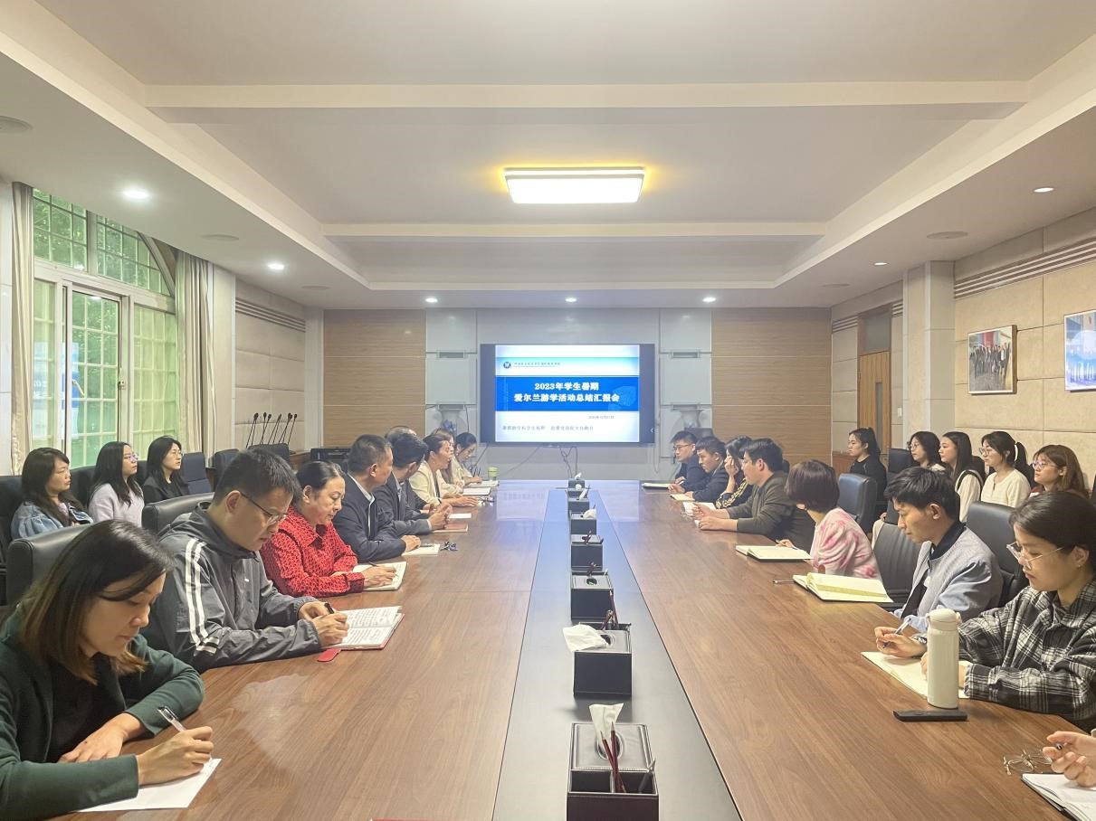 分享结束后,赵建华处长作总结发言。他指出此次暑期游学活动意义非凡,促进了中爱文化深度交流与融合,对两校的友好合作、长远发展奠定了夯实的基础。通过此次活动同学们增长了见识、体验了课堂、锻炼了能力、激励了信心,最后赵处长提出三点建议:一是学生要及时凝练总结,促进自身发展。以此次汇报为契机,充分吸收国内外优秀文化,做好自身学业及人生规划,更好地报效国家。二是学生要做好表率和传承。在后续日常生活中要善思善辩,积极地参与到国际化活动中,为学弟、学妹做好学习榜样,并将此次游学的成果通过多种形式进行展示,激励学弟学妹成长成才。三是加强中外双方交流合作,进一步研究打造促进学校对外开放的特色项目和实践活动。学校将以此次活动为契机,研究探讨进一步深化中外双方深度合作的项目和活动,提高中外合作办学学生的国际视野,提升学校对外开放的水平,真正达到促进中外合作办学提质增效的目的。