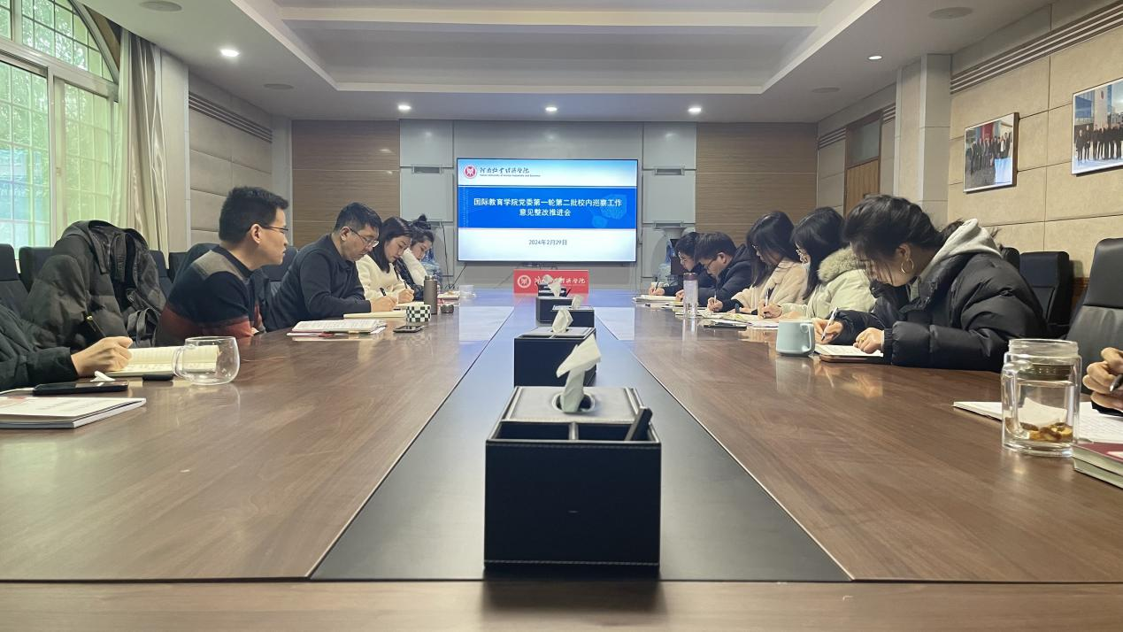 为贯彻落实学校巡整改工作会议精神,推动巡整改工作走深走实。2月29日,国际教育学院113会议室召开巡整改工作推进会学院科级及以上干部出席参加,会议由党委书记贾江主持。