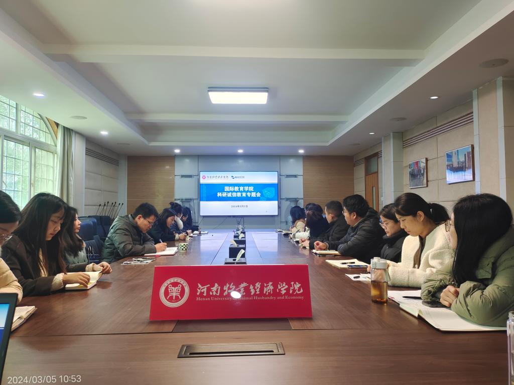 3月5日,在beat365官方网站113会议室召开《科研诚信教育专题会》。会议由副院长邓瑜主持,全院教职工参加了会议。会上,邓瑜传达了科技部等二十二部门关于印发《科研失信行为调查处理规则》的通知,接着带领大家深入学习了《科学技术活动违规行为处理暂行规定》《关于进一步弘扬科学家精神加强作风和学风建设的意见》《beat365官方网站学术道德规范》等文件精神,并强调科研诚信是个人学术生涯的基石,提醒大家要时刻保持对科学研究的虔诚和敬畏,珍惜自己学术声誉。院长胡晓波做总结发言,要求全院教职工,一定要认真领会文件精神,遵守文件规定和学术道德底线,严守红线,提高标准,诚信开展相关科研工作。