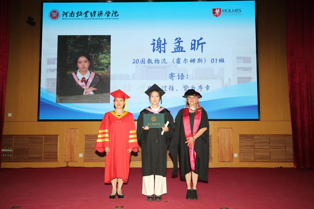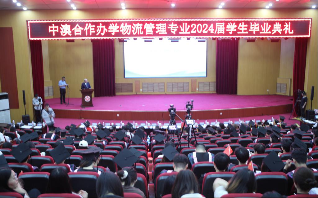 尹新明在致辞中对中澳合作办学物流管理专业首届毕业生的优异表现给予充分肯定,对合作项目的办学成效给予高度评价,并向即将踏上人生新旅程的毕业生们提出了三点希望:一要志存高远,追逐梦想。要始终将自身发展与国家、民族的命运结合起来,坚定志向、坚守理想,保持积极的人生态度,在追梦的路上努力奔跑,勇攀高峰,以实际行动诠释新时代的青年使命。二要脚踏实地,勇于创新。唯有与时俱进、求新求变,才能跟上时代步伐,在前进道路上要脚踏实地、勇于创新、锐意攻坚、踔厉奋发,注重在实践中增长才干,练就过硬本领,用辛勤的劳动为自己创造一个美好的未来。三要心怀家国,不忘初心。要善于培养世界眼光,开阔和丰富国际视野;要明德励志、爱国奉献,始终不渝地将爱国之情根植于心,将富强国家、复兴民族大任镌刻于行,以“青春有为,未来有我”的自信和担当,创造青春之中国、青春之未来。