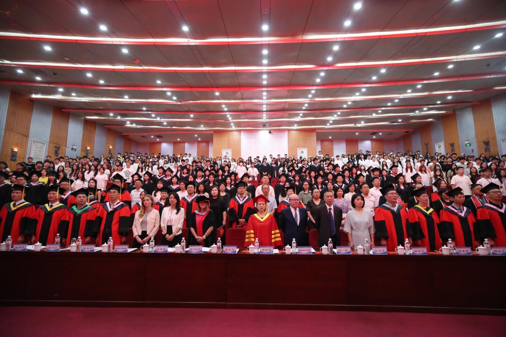 暖场歌曲《beat365官方网站校歌》及毕业纪念视频《殊途》拉开了毕业典礼的序幕,勾起了毕业生难忘的回忆,表达了对母校的浓浓眷恋与对师友的依依不舍,展现了中外合作办学项目学子在脚踏实地中磨练成长、在激流勇进中蜕变成熟的精神风貌。