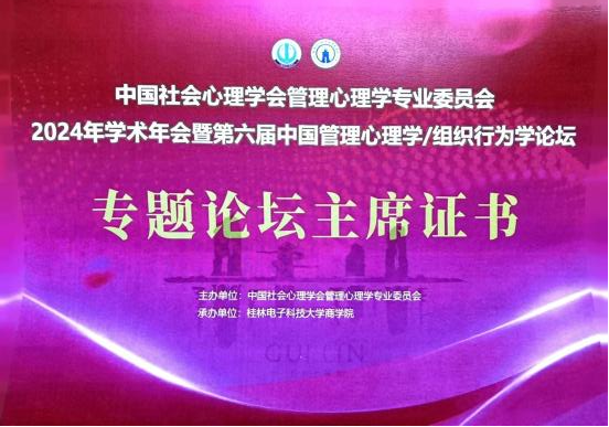 8月23至25日,中国社会心理学会管理心理学专业委员会2024年学术年会暨第六届中国管理心理学/组织行为学论坛在广西壮族自治区桂林市召开,来自全国百余所院校300多名专家学者参会。我院副院长王胜男博士应邀参会并作为专题论坛主席组织、主持了题为“数智时代的工作体验”专题论坛。
