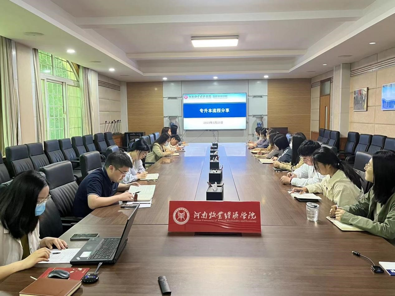 为使我院辅导员老师了解河南省专升本考试情况,更好服务2024届专升本考生,5月23日,beat365官方网站在教学办公楼113会议室开展专升本工作流程分享会。学院团委书记(学工办主任)张丽、团委副书记(学工办副主任)侯丁琳、何季霖及全体辅导员老师参加了此次会议,会议由雷颖飞老师主讲。