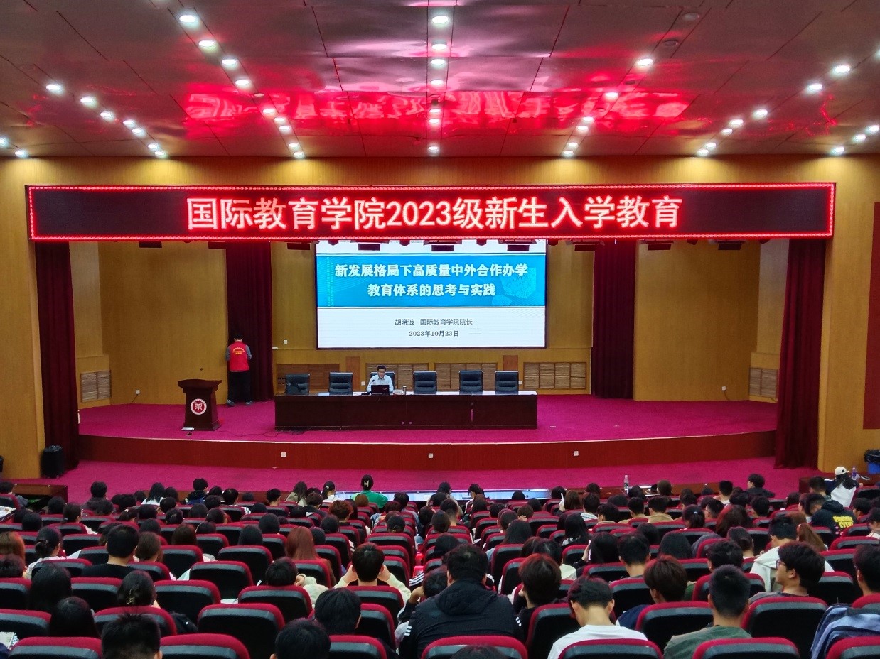 为进一步引导2023级新生了解学院中外合作办学概括,增强荣誉感和使命感,10月23日,beat365官方网站院长胡晓波以《新发展格局下高质量中外合作办学教育体系的思考与实践》为题为全体2023级新生作专题辅导报告。报告由学院团委书记(学工办主任)张丽主持。