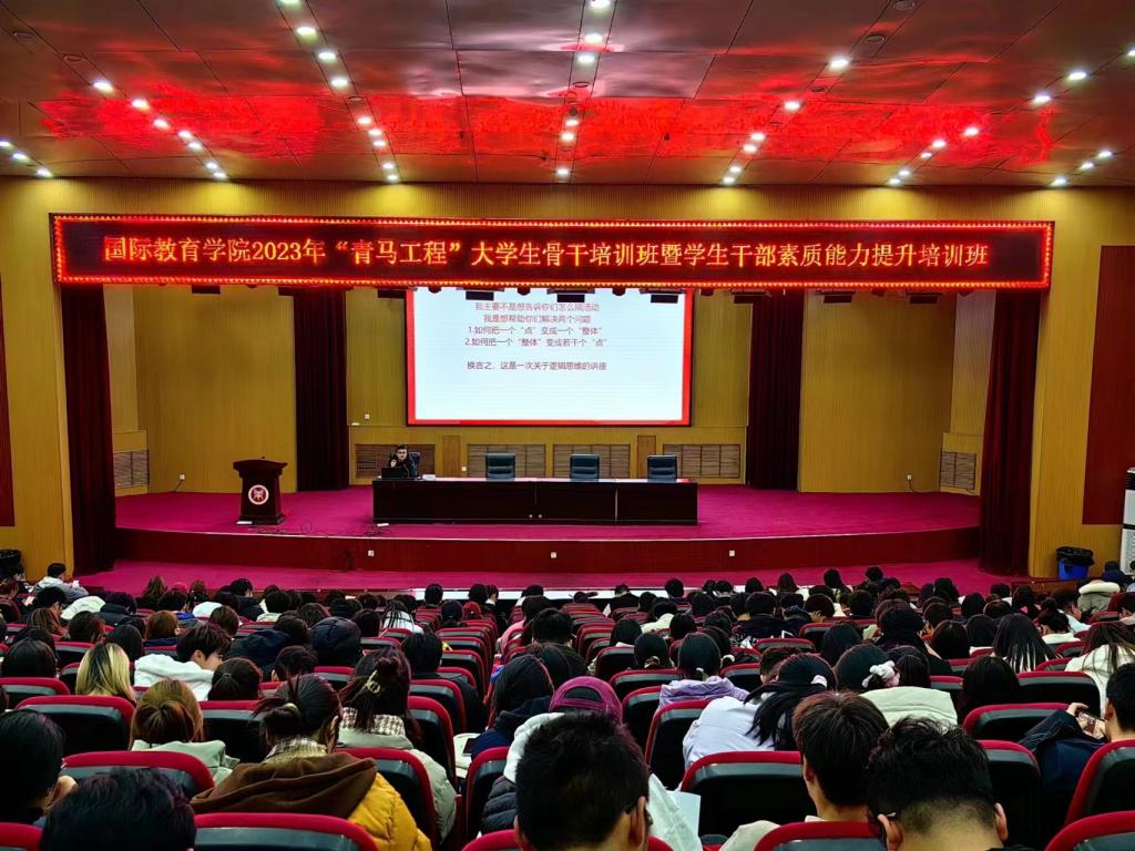 11月27日中午,beat365官方网站“青马工程”大学生骨干培训班暨学生干部素质能力提升培训班第七讲——《如何策划、组织、开展高水平的团学活动》专题报告在英才校区学术报告厅举行。此次培训由学院团委副书记何季霖主讲,学院青马学员、团学会学生干部和23级各班班委参加了本次培训。