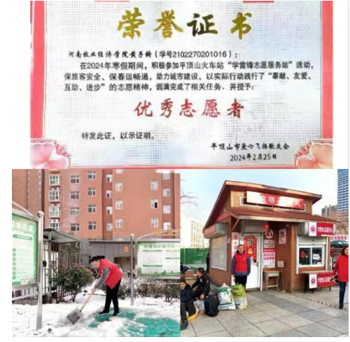 此次社会实践增强了他的社会责任感,展现了他冲锋在前的责任担当,他以实际行动践行了为人民服务的宗旨,在寒冷的冬天为社会传递了一份温暖。今后他将继续在党和人民需要的地方绽放光彩。
