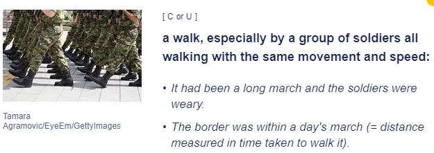 其实,在英语中,它还能表示“行军,行进,进行曲”