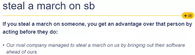 “steal a march on someone”的意思是“如果你先采取行动,你就会比那个人更具优势。”