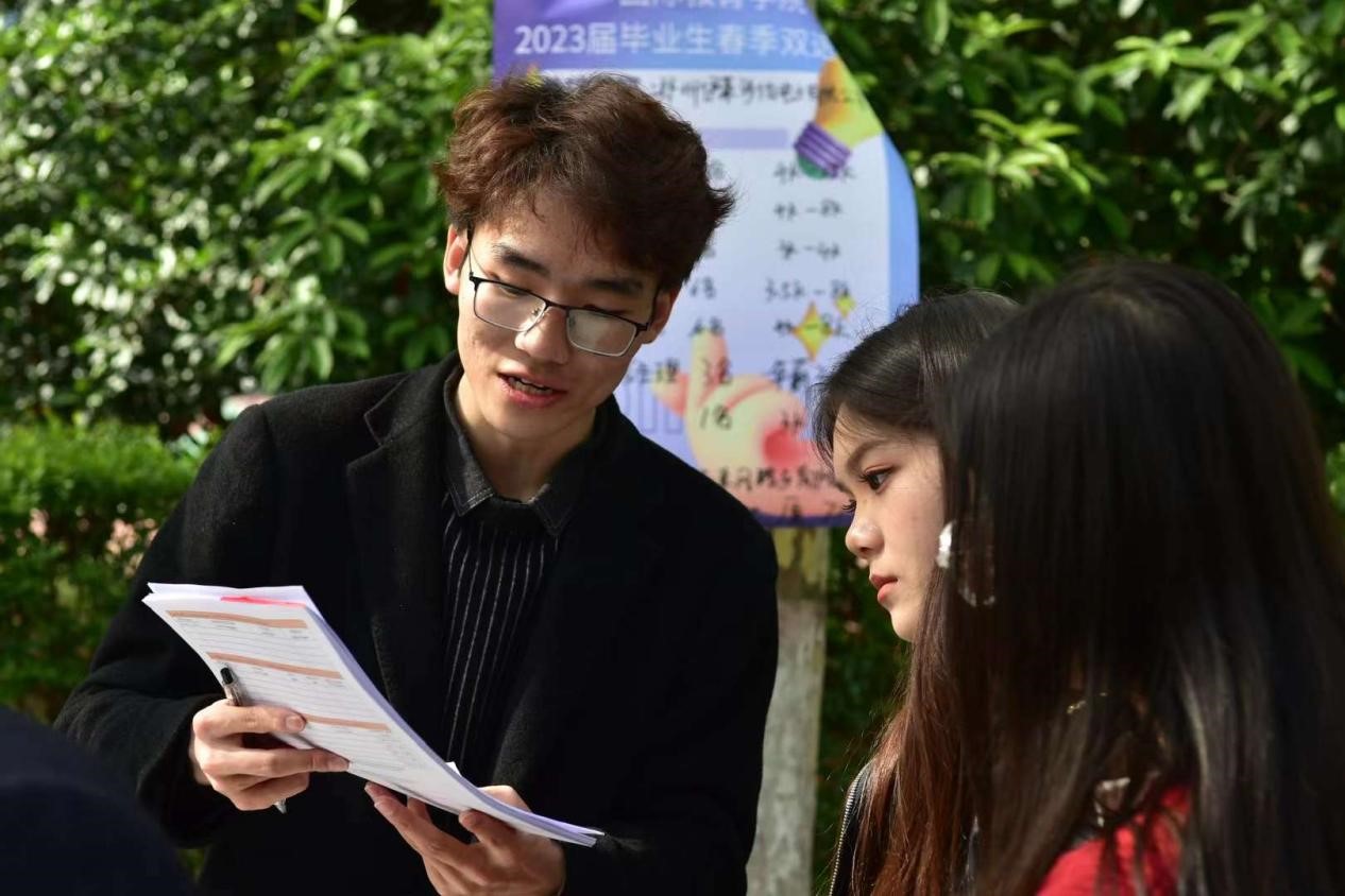 学院院长胡晓波首先对参加学院双选会的各用人单位表示热烈欢迎,并表示,为进一步贯彻党中央、国务院、省委、省政府关于促进高校毕业生就业创业决策部署,beat365官方网站聚焦“引航”春招季主题,一是抢机遇,疫情三年过去之后第一时间启动校园招聘,做到“每天有岗位信息推介,每周有线上以及线下专场宣讲、每个专业都有招聘”;二是拼市场,学院领导带队深入走访各用人单位,开展校企合作和“访企拓岗活动”,想方设法为毕业拓宽就业渠道,以“拼抢”的姿态激发学生就业创业活力。学院党委副书记李江红表示,本次招聘会组织吸引众多省内外企事业单位参与,希望广大高校毕业生抓住本次招聘机遇,树立正确的就业观念,找到适合自己的工作岗位,闯出一片天地,干出一番事业。参会用人单位,从企业规模、业务范围、人才需求、校企合作等方面情况依次进行了介绍,并纷纷向学院伸出橄榄枝,表达共同合作的意愿。