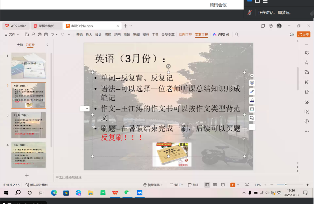 讲座中,苗玉博、周梦远同学毫无保留地将自己的复试经验倾囊相授,从前期准备、复试备考、复试技巧、面试礼仪、答题思路等多个方面,进行了全面且细致的分享。任绍华、陈羽洁同学强调了信息收集的重要性,告诉大家要充分利用学校官网、考研论坛、直系学长学姐等多种渠道,去了解目标院校复试的具体要求、考试科目、参考书目、历年分数线、报录比等关键信息,做到知己知彼。
