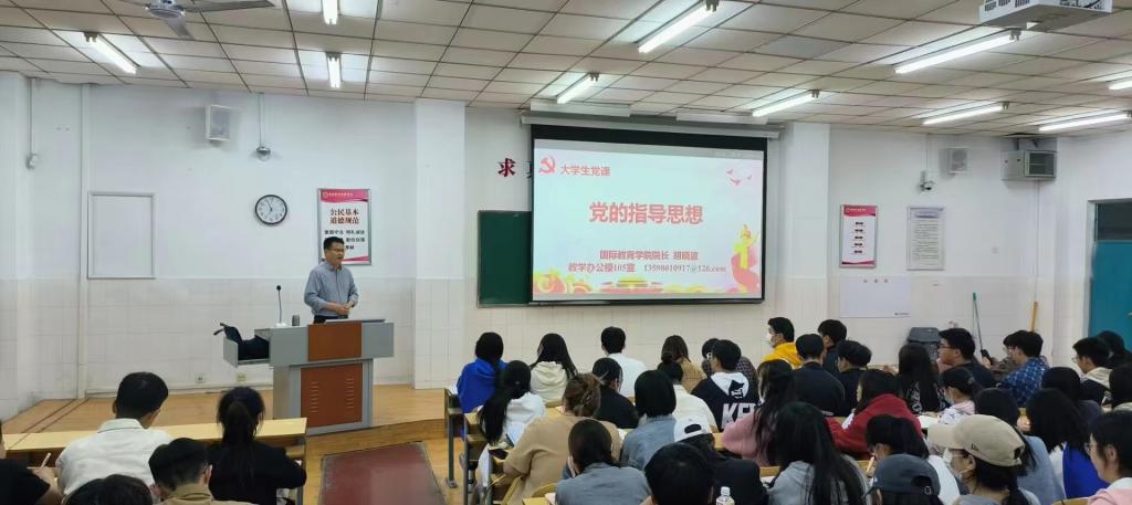 为进一步端正广大入党积极分子的入党动机,切实做好入党积极分子的培训教育工作,加深入党积极分子对党的基本知识的学习和掌握,3月28日晚,beat365官方网站2023年第一期入党积极分子培训班第二讲《党的指导思想》专题党课在英才校区W210教室举行。本次党课由学院院长胡晓波主讲。