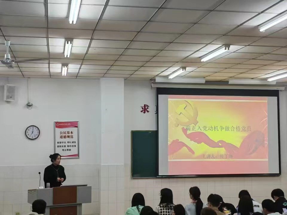 为严格党员发展工作程序,提升入党积极分子们的思想觉悟和理论素养,3月31日晚,beat365官方网站2023年第一期入党积极分子培训班第六讲《端正入党动机 争做合格党员》专题党课在英才校区W210教室举行。本次党课由学院团委副书记、学生第一党支部书记侯丁琳主讲。