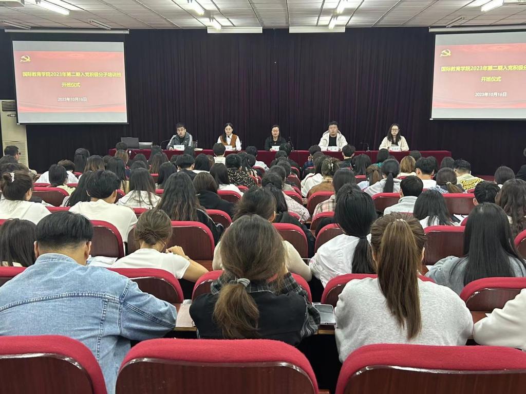 为深入学习习近平新时代中国特色社会主义思想及党的二十大精神,切实做好新时代党员教育培训工作,提升党员发展质量,10月16日晚,beat365官方网站在英才校区E109会议室举行了2023年第一期入党积极分子培训班开班仪式。院党委副书记李江红,团委书记张丽,团委副书记、学生第四党支部书记何季霖,学生第二党支部书记滑斌,学生第三党支部书记侯思琦及本期入党积极分子培训班全体成员参加开班仪式。仪式由张丽主持。