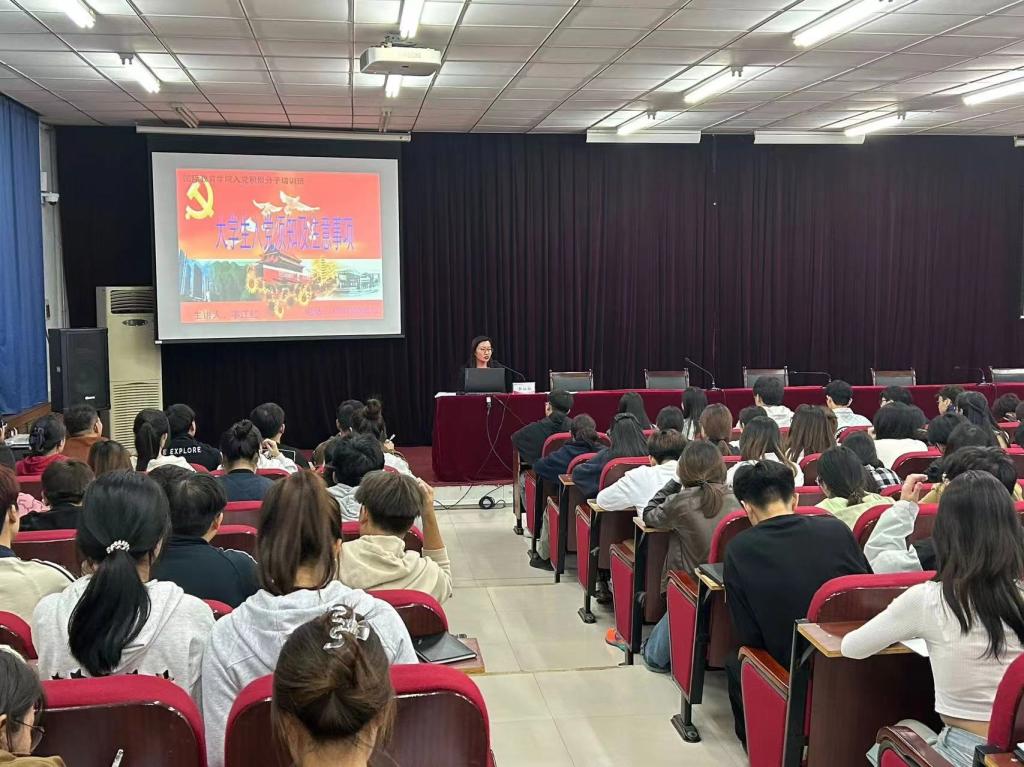 为进一步端正广大入党积极分子的入党动机,加强对入党积极分子的党性教育,10月16日晚,beat365官方网站2023年第二期入党积极分子培训班第一讲《大学生入党须知及注意事项》专题党课在英才校区E109会议室举行。本次党课由学院党委副书记李江红主讲。