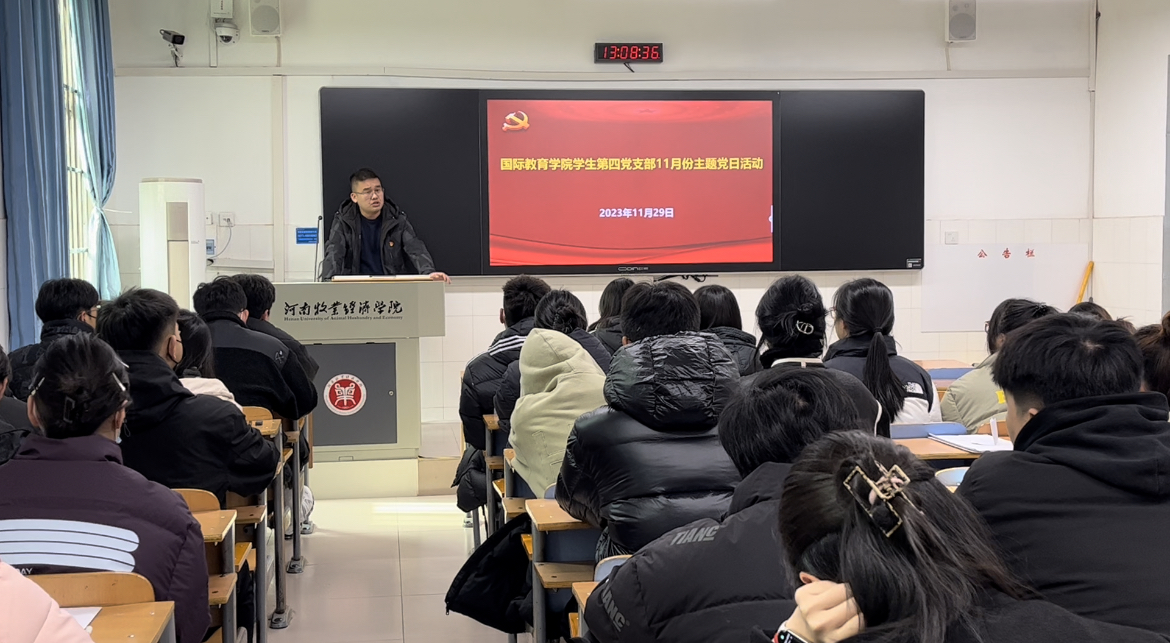 11月29日中午,beat365官方网站学生第四党支部在英才校区A107教室开展11月份主题党日活动。党支部全体党员参加会议,会议由党支部书记何季霖主持。