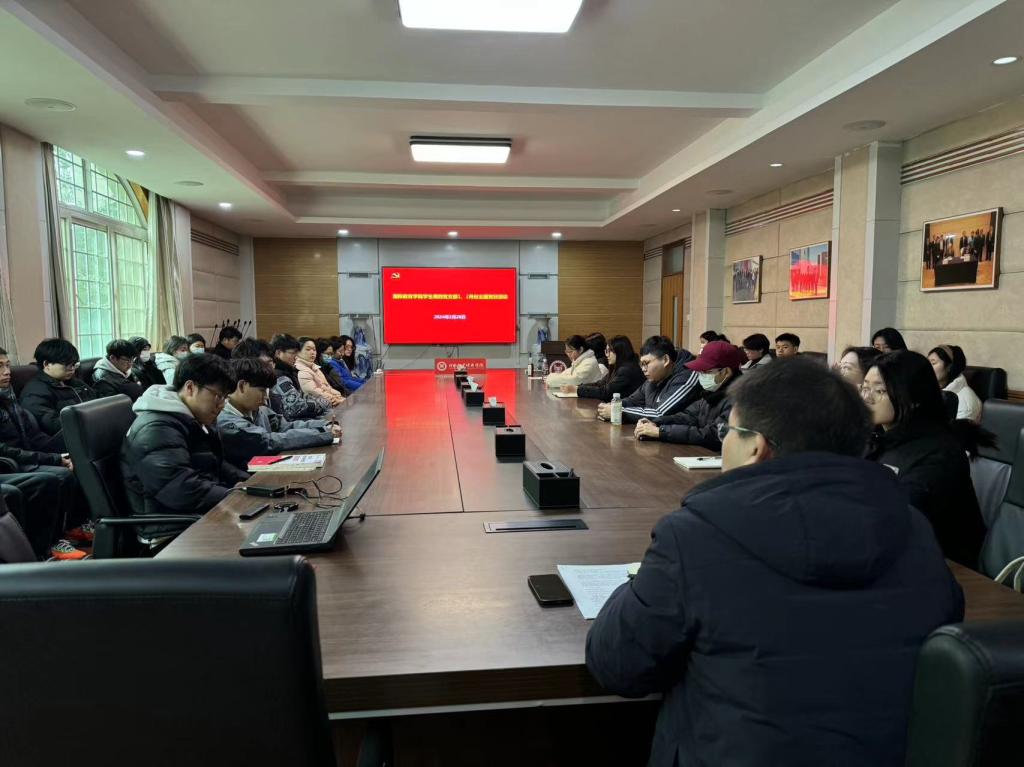 2月28日,beat365官方网站学生第四党支部在英才校区教学办公楼113会议室开展1、2月份主题党日活动。党支部全体党员参加会议,会议由党支部书记何季霖主持。