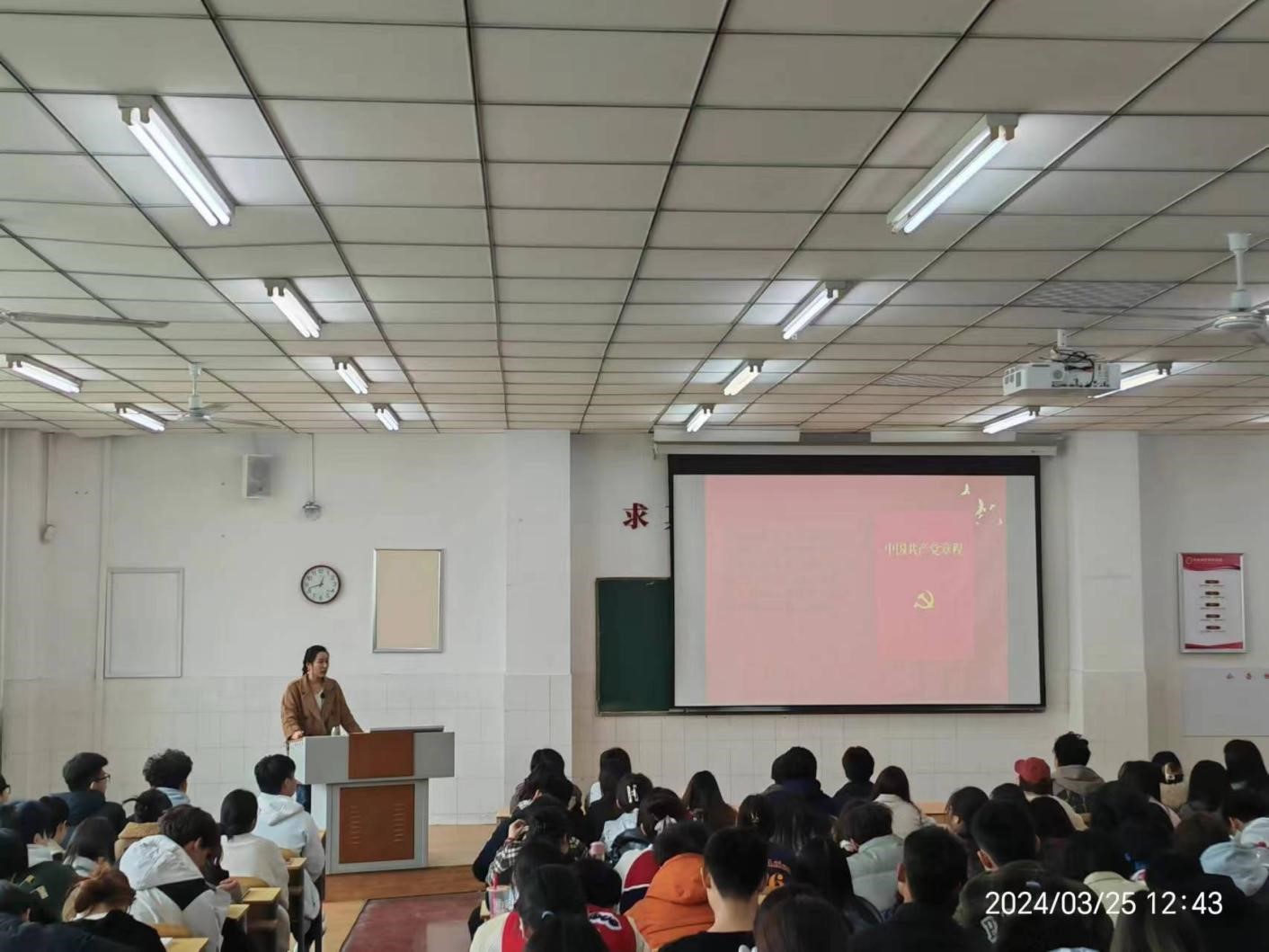 为进一步端正广大入党积极分子的入党动机,切实做好入党积极分子的培训教育工作,3月25日中午,beat365官方网站2024年第一期入党积极分子培训班第五讲《党员的条件权利和义务》专题党课在英才校区W210教室举行。本次党课由学院团委副书记、学生第一党支部书记侯丁琳主讲。