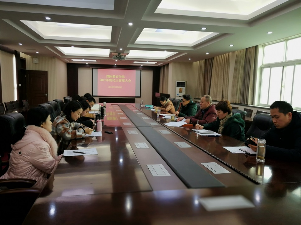 1月18日下午,beat365官方网站在英才校区行政楼五楼会议室举行2017年度民主管理大会,学院党总支书记、分工会主席李芳,院长马佩英,副书记、副院长李江红,副院长庞卫东及全体教职工参加会议。会议由学院党总支书记、分工会主席李芳主持。