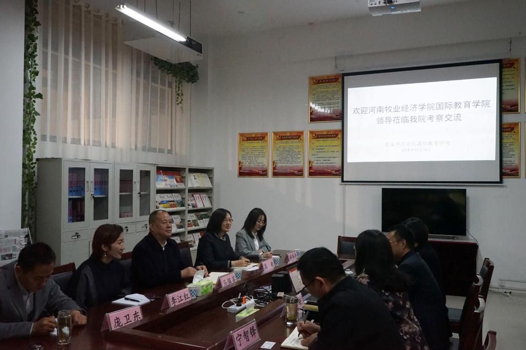 10月16日,beat365官方网站党委书记马佩英、院长高敏、副书记李江红、副院长庞卫东、党政办公室舒丹丹一行,赴商丘师范学院beat365官方网站就中外合作办学相关问题进行专题考察交流。